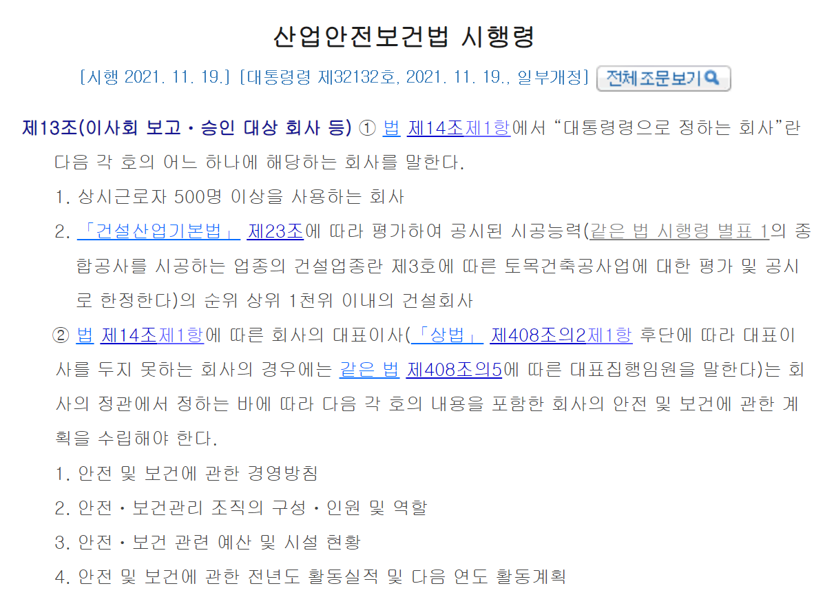 | 산업안전보건법 제14조 - 이사회 보고 및 승인의 대상 및 내용 (0) | 2022.03.13 |