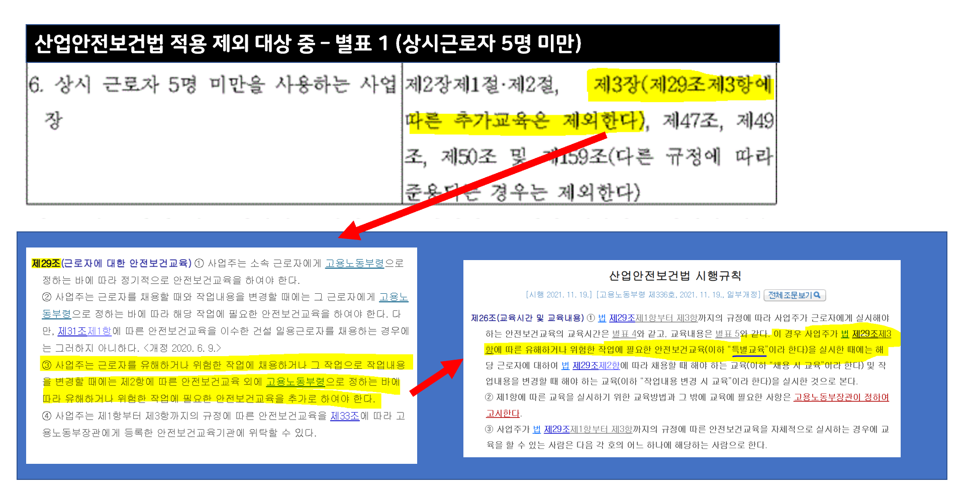 (2) 상시근로자 5명 미만인 사업장에서 산안법 제29조에 3항에 따른 추가교육은 제외 대상에서 제외하고 있다.