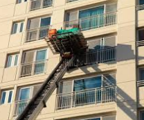 연장 및 축소가 가능하고 끝단을 건축물 등에 지지하는 구조의 사다리형 붐(이하 "사다리 붐"이라 한다)을 따라 동력으로 움직이는 운반구를 사용하여 화물을 운반하는 설비로써 화물자동차 등 차대위에 탑재하여 이삿짐운반 등에 사용하는 것을 말한다.